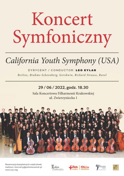 Serdecznie zapraszamy na Koncert Symfoniczny młodzieżowej orkiestry symfonicznej ze Stanów Zjednoczonych – CALIFORNIA YOUTH SYMPHONY