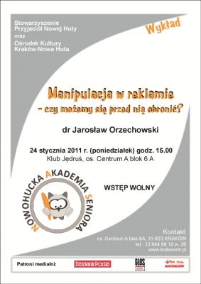 W jaki sposób próbuje się manipulować konsumentem? Czym jest nieuczciwy PR? Promocje, obniżki, wyprzedaże – jakie tricki stosowane są przez duże sieci handlowe? Na te i inne pytania odpowie podczas kolejnego wykładu w ramach Nowohuckiej Akademii Seniora dr Jarosław Orzechowski.