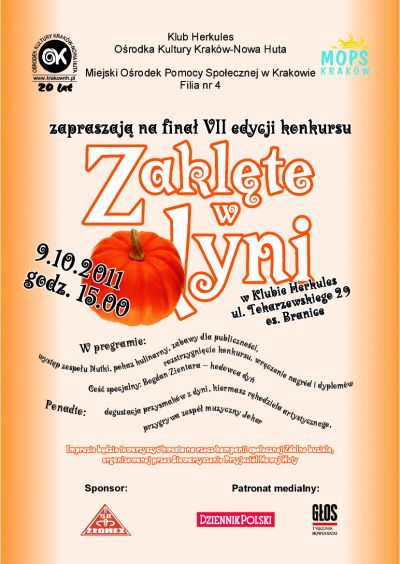 Klub Herkules Ośrodka Kultury Kraków – Nowa Huta (ul. Tokarzewskiego 29) i Miejski Ośrodek Pomocy Społecznej w Krakowie Filia nr 4 zapraszają na VII edycję konkursu, którego twórczym tworzywem jest dynia.
