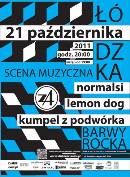 21 października zapraszamy na Łódzką Scenę Muzyczną- Barwy Rocka do Zaścianka (ul. Rostafińskiego 4). Wystąpią: Normalsi, Lemon Dog, Kumpel z Podwórka. Start koncertu o 20:00