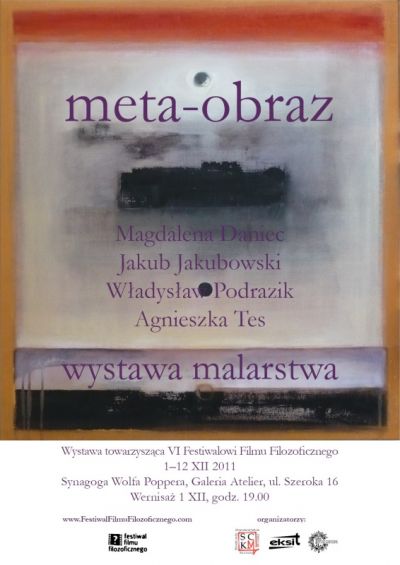 Meta–obraz to obraz wychodzący poza percepcję codziennego doświadczania, podnoszący wzrokową świadomość na niedostępne w zwyczajnym postrzeganiu poziomy. Taki obraz jest bohaterem tej wystawy. To wielki temat i zapewne tutaj znajdzie się miejsce tylko dla zaznaczenia jego żywej obecności, pulsującej pod powierzchnią przemijających zjawisk, modnych, desperacko poszukujących nowości, nieraz nawet warsztatowo wirtuozerskich manifestacji, którym zdają się sprzyjać muzea sztuki współczesnej, prestiżowe galerie i magazyny. Meta-obraz, nazwijmy go tak umownie, przemawia cicho i nie posługuje się chwytliwym banałem, nie epatuje, nie skandalizuje, ale jego wyraz dociera głęboko, często znacznie głębiej niż to, co potrafi wypowiedzieć język. Być może właśnie dlatego mało kto próbuje się wsłuchać w tę mowę, mało kto potrafi ją dosłyszeć i zrozumieć. Mówi się dziś wiele o sztuce zaangażowanej w problemy naszego czasu, ta sztuka umie krzyczeć, podchwytywać bieżące trendy, zarazem jednak szybko tonie w pustce podobnej do tej, w jakiej zanurzone jest nasze pospieszne, zachłanne życie. Wiele hałasu o nic, chciałoby się dodać. Tymczasem od sztuki oczekiwano kiedyś, a niektórzy oczekują też dzisiaj czegoś więcej, czegoś wyżej, jakiegoś kontrapunktu dla nihilizmu i chaosu. Właśnie tak. W plastyce, jak również we wszelkiego rodzaju twórczości i obecnie daje się uchwycić wątki sięgające daleko ponad, istotnie w głąb, choć ich odnalezienie łączy się często z poruszaniem w skomplikowanym labiryncie. Na tej wystawie staramy się pokazać kilka wybranych zjawisk ze świata sztuk pięknych, malarskich realizacji, które zbliżają się lub próbują zbliżyć do sfery metafizyki.