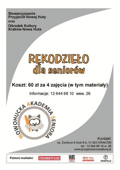 Wszystkie zainteresowane osoby prosimy o kontakt z Nowohucką Akademią Seniora - tel. 12 644 68 10 wew. 26, od poniedziałku do piątku w godz. 8.00 – 16.00.