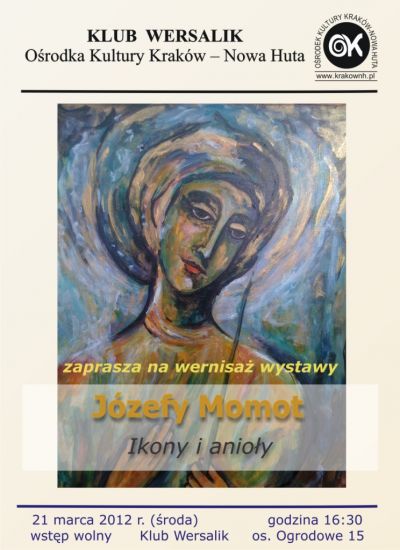 Wernisaż wystawy prac Józefy Momot prezentujący ikony i anioły. Spotkanie, które odbędzie się w Klubie Wersalik Ośrodka Kultury Kraków-Nowa Huta połączone będzie z wieczorem poezji.