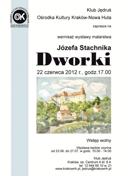 Klub Jędruś Ośrodka Kultury Kraków-Nowa Huta (os. Centrum A 6a) zaprasza 22 czerwca 2012 r. (piątek) o godz. 17.00 na wernisaż prac Józefa Stachnika.