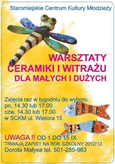Zapraszamy wszystkich chętnych na zajęcia w Pracowni ceramiki i witrażu, w trakcie których poznajemy różne techniki formowania gliny, również na kole garncarskim.