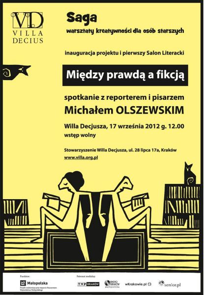 W poniedziałek 17 września o godz. 12.00 w Willi Decjusza odbędzie się inauguracja projektu Saga. Gościem pierwszego Salonu Literackiego będzie Michał Olszewski – pisarz i reporter „Tygodnika Powszechnego”.