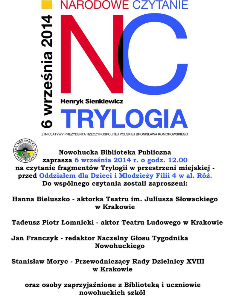 Narodowe Czytanie "Trylogii" Henryka Sienkiewicza z Nowohucką Biblioteką Publiczna w Krakowie