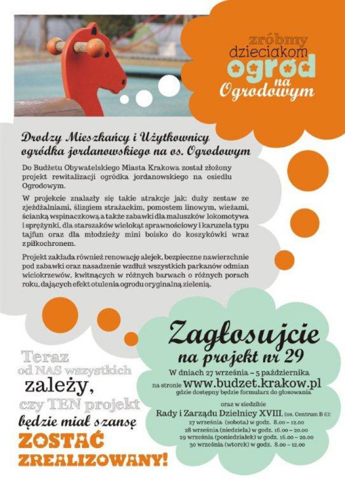 Projekt nr 29 na liście Dzielnicy 18 Nowa Huta w Budżecie Obywatelskim