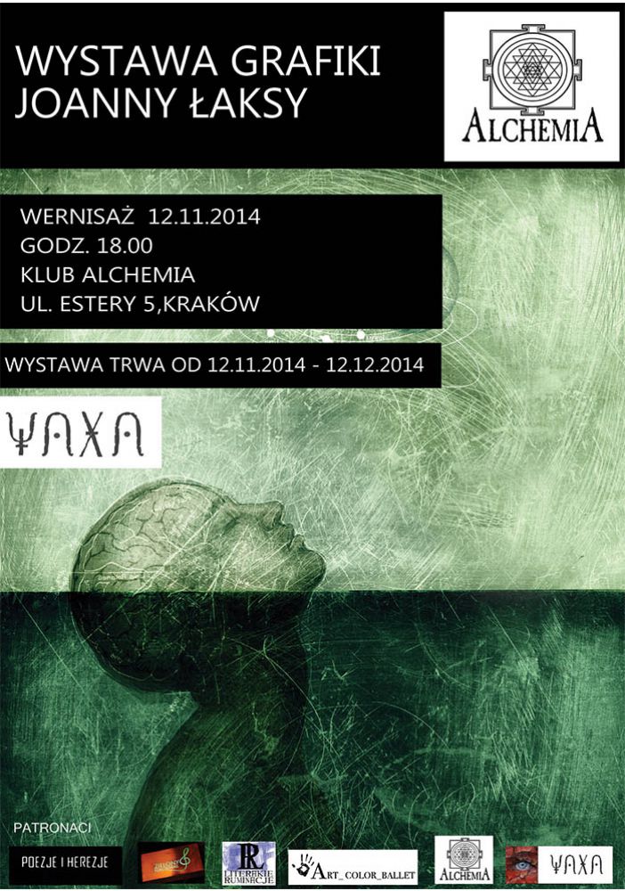 WYSTAWA GRAFIKI YAXY (tj. JOANNY ŁAKSY)w KLUBIE ALCHEMIA w KRAKOWIE