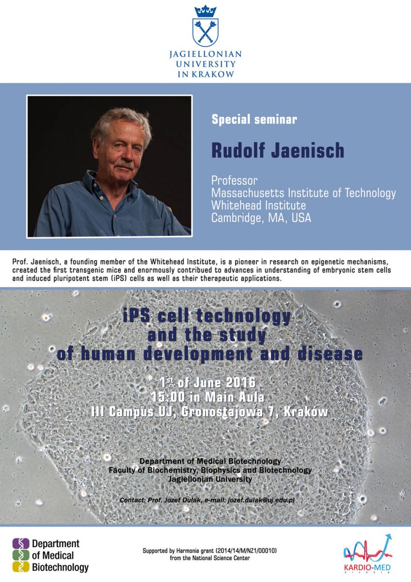 Wykład profesora Rudolfa Jaenischa - 1 czerwca 2016 - „iPS cell technology and the study of human development and disease"