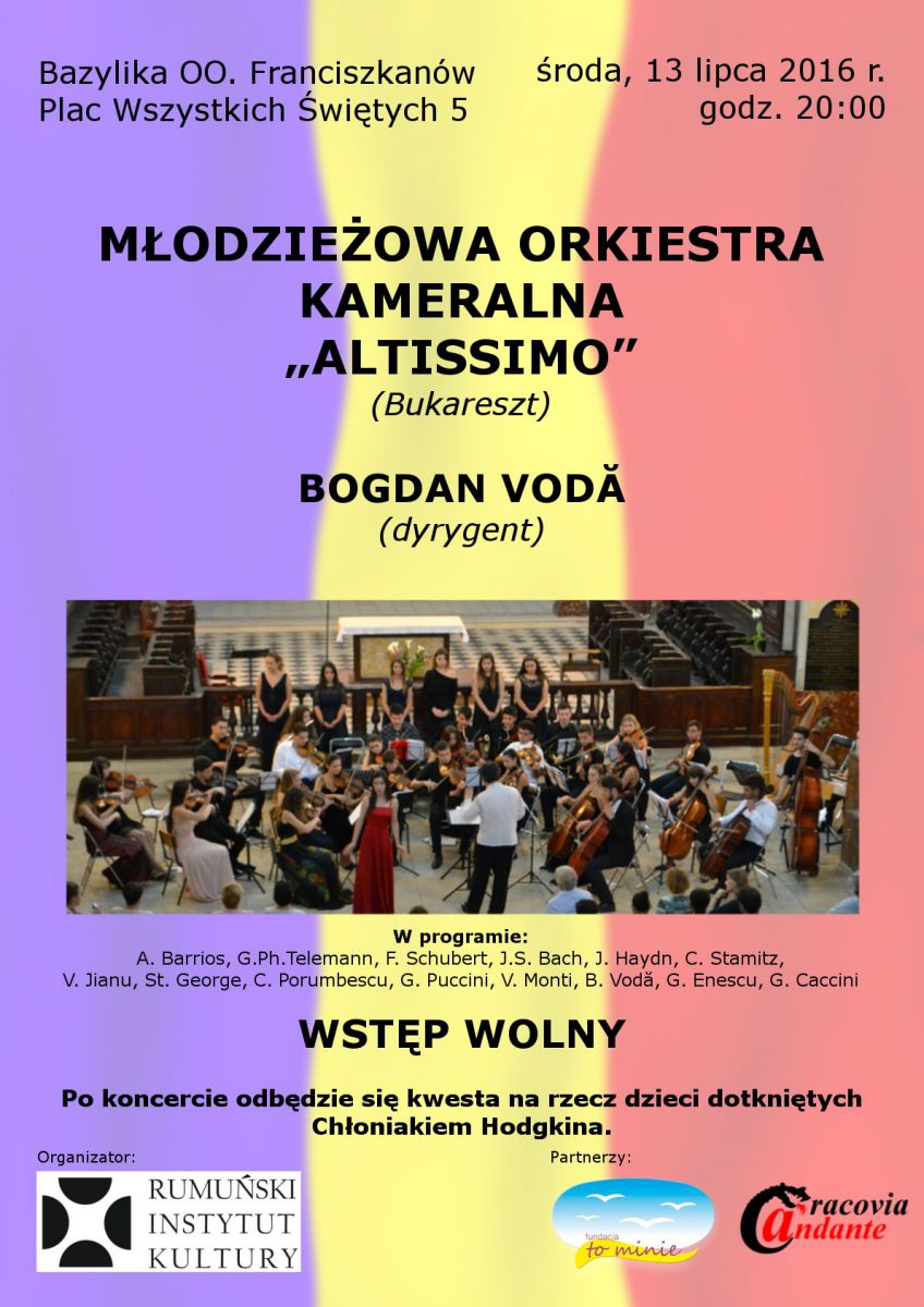Koncert Młodzieżowej Orkiestry Kameralnej ALTISSIMO z Bukaresztu