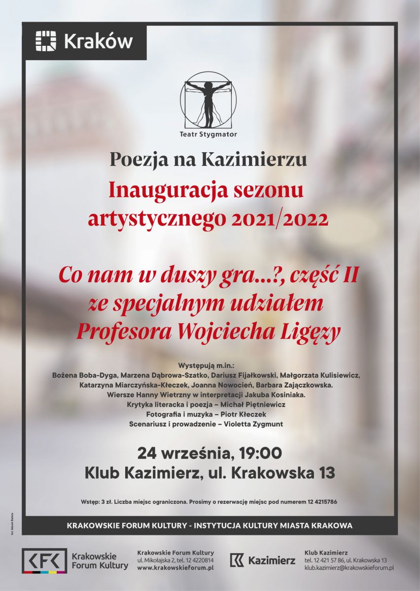 POEZJA NA KAZIMIERZU - Teatr Stygmator zaprasza. "Co nam w duszy gra...?" Inauguracja sezonu 2021/2022.