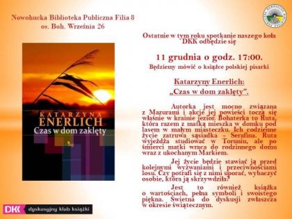 Spotkanie Dyskusyjnego Klubu Książki „Czas w dom zaklęty”- Katarzyny Enerlich