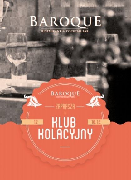 W pitek, 16 listopada 2012 roku, Baroque Restaurant & Cocktail Bar zaprasza na drugie spotkanie Klubu Kolacyjnego. Motywem przewodnim wieczoru bdzie kuchnia woska.