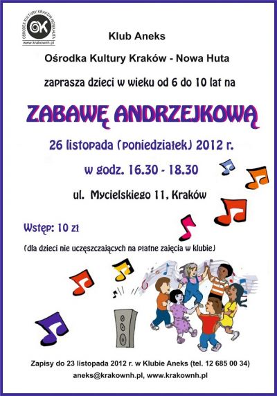 Zbliaj si Andrzejki! A jeli Andrzejki to zabawa, wrby i swawole, na ktre zaprasza Klub Aneks Orodka Kultury Krakw-Nowa Huta (ul. Mycielskiego 11). Zabawa odbdzie si 26 listopada 2012 r. w godz. 16.30-18.30.