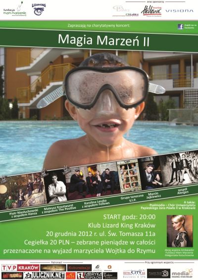 Ju po raz drugi Ambasador Fundacji Mam Marzenie - Magorzata Kouchowska, a take jej wolontariusze serdecznie zapraszaj wszystkich na koncert charytatywny Magia Marze II, ktry odbdzie si 20 grudnia 2012 roku o godzinie 20:00 w klubie L(...) ... więcej » |