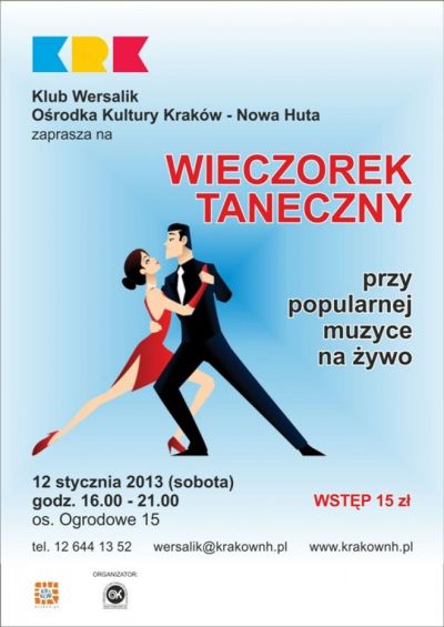Klub Wersalik Orodka Kultury Krakw-Nowa Huta (os. Ogrodowe 15) zaprasza wszystkich dorosych na bezalkoholowy wieczorek taneczny.