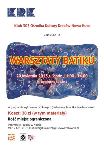 Wszystkie osoby, ktre chciayby nauczy si tej techniki i wykona oryginalne apaszki, zapraszamy 20 kwietnia br. w godz. 11.00-14.00 na zajcia do Klubu 303 Orod(...) ... więcej » |