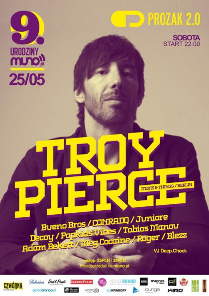 25 maja w krakowskim klubie Prozak 2.0 huczne obchody urodzin muno.pl, gdzie obok przedstawicieli poznaskiej i krakowskiej sceny klubowej sam TROY PIERCE!
