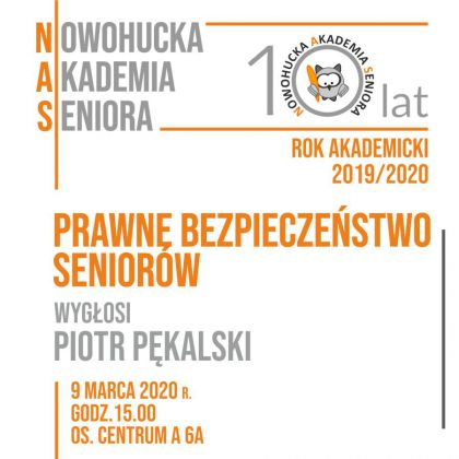 | Nowohucka Akademia Seniora (os. Centrum A 6a) zaprasza 9 marca o godz. 15.00 na wykad Prawne bezpieczestwo seniorw. W zawiociach polskiego prawa gubi si czasem nawet obeznani z nim na co dzie prawnicy, a co dopiero seniorzy. Osoby starsze czsto nie zdaj sobie sprawy, jakie zagroenia i kruczki czaj si na nich zarwno ze strony pospolitych przestpcw i oszustw jak rwnie dziaajcych cakowicie legalnie, ale dcych za wszelk ce(...) ... więcej » |
