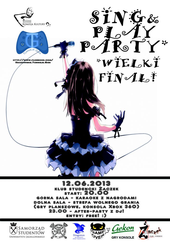 Fundacja Studentów i Absolwentów UJ "Bratniak" oraz Uczelniana Komisja Kultury Samorzšdu Studentów UJ serdecznie zapraszajš na Wielki Finał - imprezę będšcš podsumowaniem cyklu Sing & Play Party. W cišgu tego roku akademickiego widzieliœmy się już 10 razy, dlatego przygotowaliœmy dla was coœ specjalnego na zakończenie.