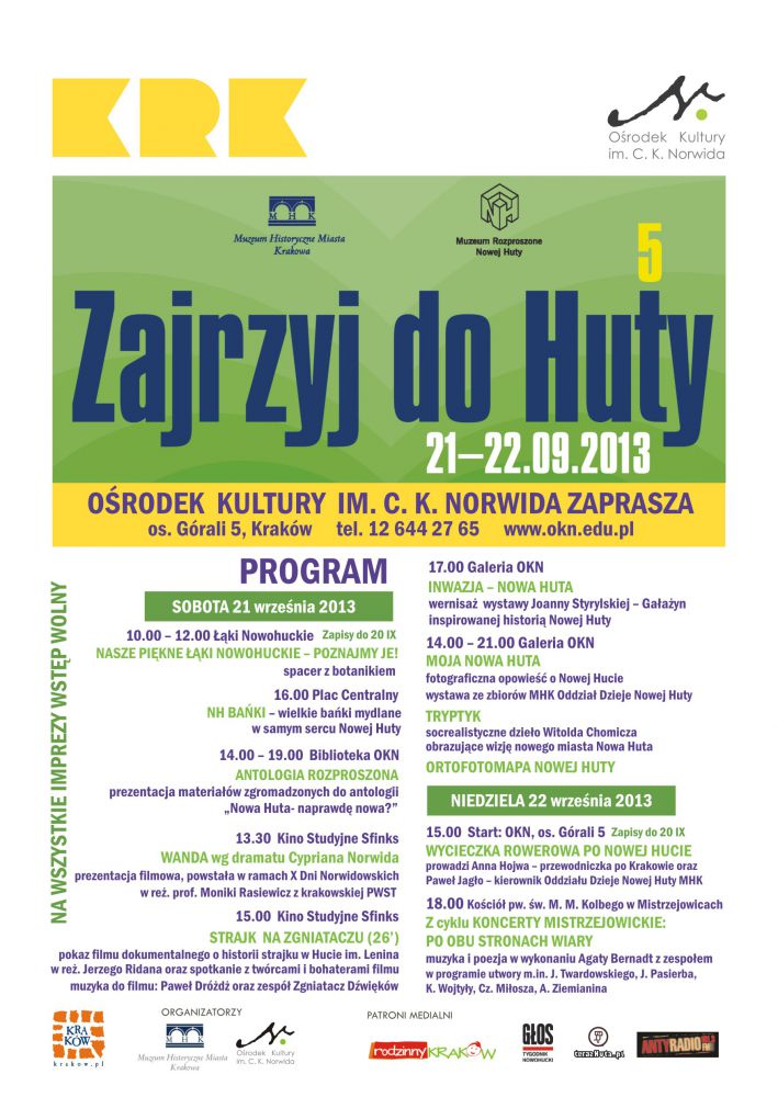 Muzeum Historyczne M. Krakowa i nowohuckie instytucje kultury zapraszajš do odwiedzenia Nowej Huty. Oœrodek Kultury im. Norwida przygotował swój "program nowohucki", na który serdecznie Państwa zaprasza. Wstęp wolny!