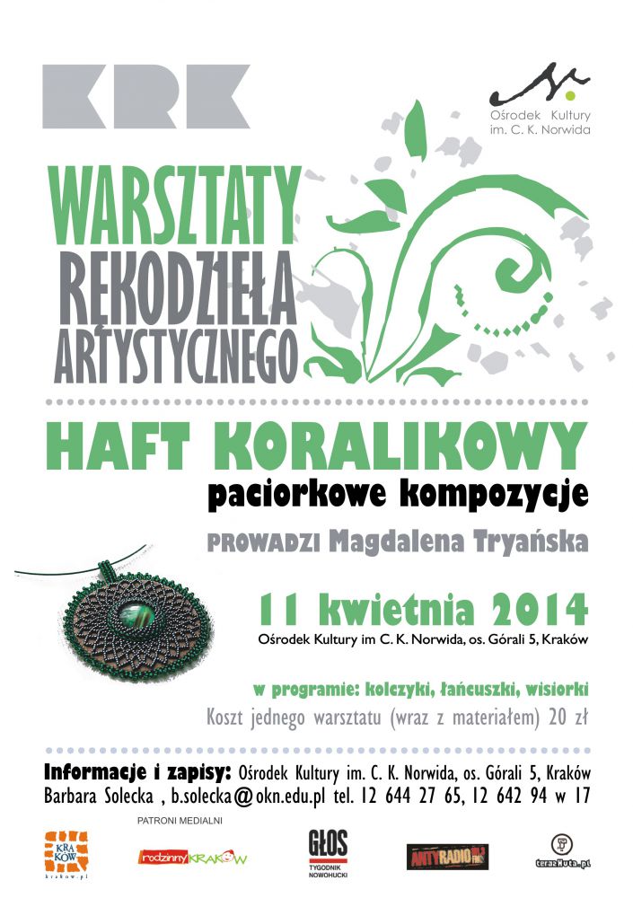 Warsztaty odbywajš się w 2 pištki w miesišcu, w godzinach 17.00-19.00, cena za zajęcia wraz z materiałem 20 zł. Prowadzenie: Magdalena Tryańska