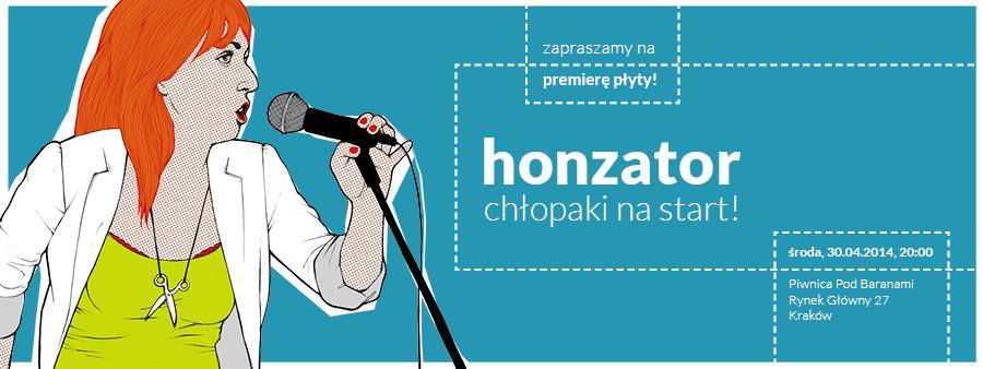 Graj rocka z przymrueniem oka! Gono i dynamicznie! Projekt rozgrzewajcy i intrygujcy! Ich teksty zniewalaj kobiety trafiajc w sedno kobiecego spojrzenia na wiat! Ich wokalistka zniewala mczyzn! Ich muzyka to zastrzyk pobudzajcej do ycia energii! teksty: Micha Zabocki muzyka: Aleksander Brzeziski wicej: www.honzator.pl i www.facebook.com/honzator info i rezerwacje: + 48 12 421 25 00, +48 12 422 01 77, piwnicapodbaranami@gmail.com