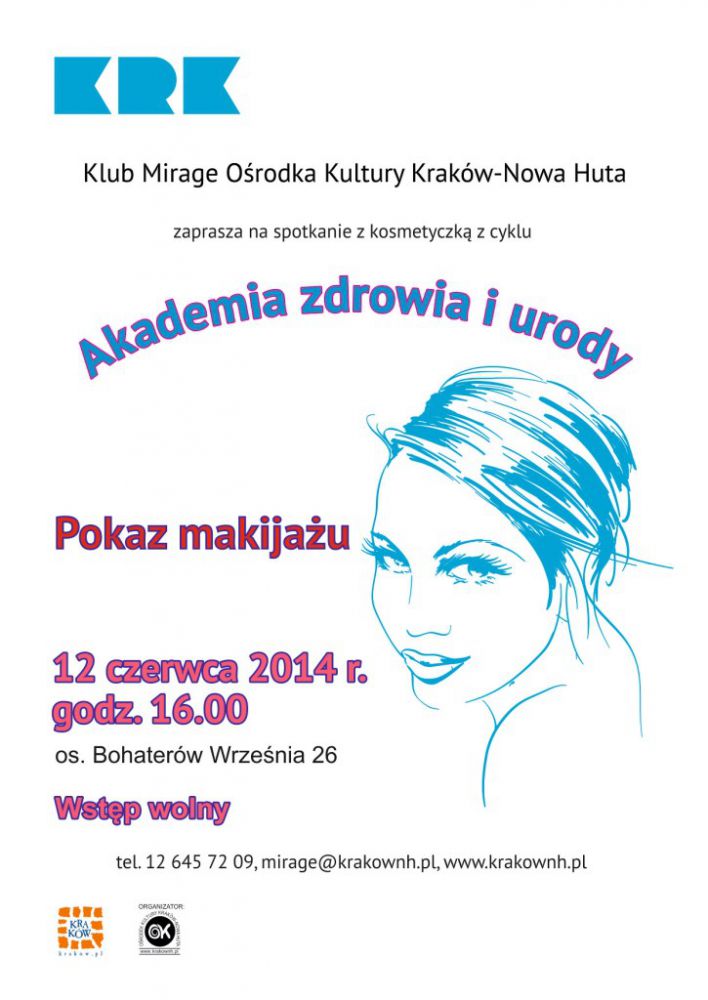 Na kolejne spotkanie z konsultantkš kosmetycznš w ramach cyklu Akademia zdrowia i urody zaprasza 12 czerwca 2014 r. o godz. 16.00 Klub Mirage Oœrodka Kultury Kraków-Nowa Huta (os. Bohaterów Wrzeœnia 26).