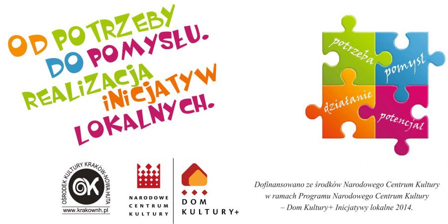 Projekt dofinansowano ze rodków Narodowego Centrum Kultury w ramach Programu Narodowego Centrum Kultury Dom Kultury+ Inicjatywy lokalne 2014.