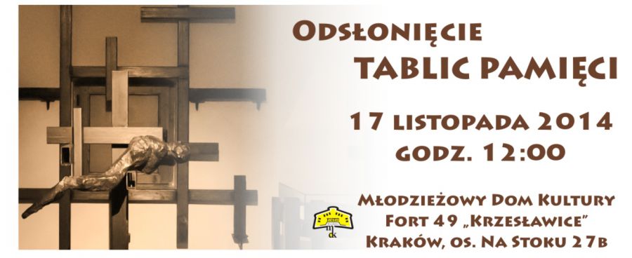 TABLIC PAMIĘCI upamiętniajšcych rozstrzelanie 440 Polaków w latach 1939-1941 na terenie Fortu 49 Krzesławice.