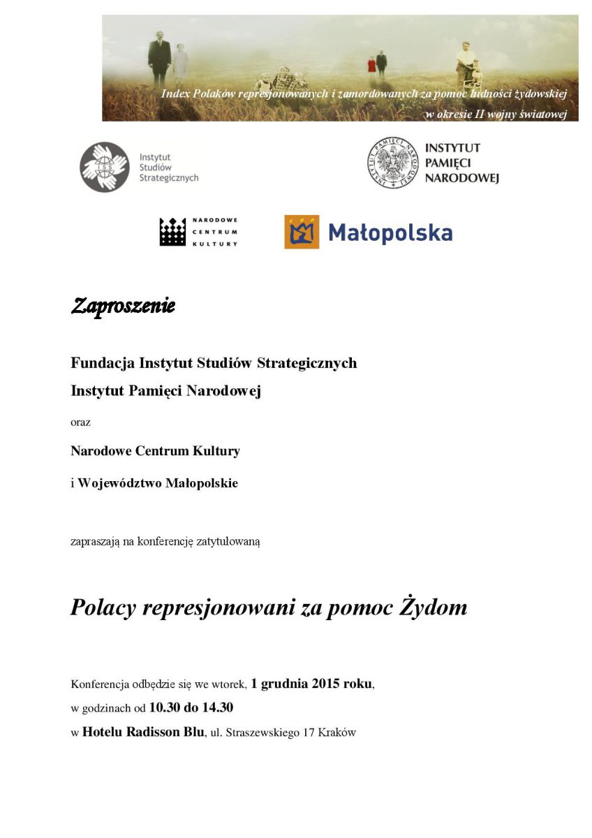 Grudniowa konferencja stanowi posumowanie i prezentację rezultatów programu "Index Polaków represjonowanych i zamordowanych za pomoc ludnoci żydowskiej w okresie II wojny wiatowej", realizowanego latach 2013 - 2015 przez Fundację Instytut Studiów Strategicznych oraz Instytut Pamięci Narodowej.