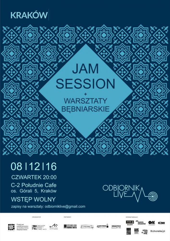 Kolejne otwarte jam session w Nowej Hucie w ramach cyklu Odbiornik Live. Przed jammowaniem odbędš się warsztaty gry na bębnach, które poprowadzi Krystian Truchalski. Iloć miejsc na bębnienie jest ograniczona ze względu na iloć bębnów jakš dysponujemy, dlatego chętnych prosimy o wczeniejsze zapisy: