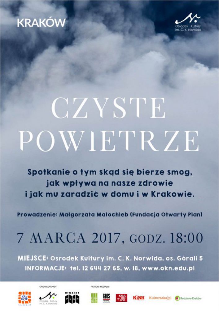 Spotkanie o tym skšd się bierze smog, jak wpływa na nasze zdrowie i jak mu zaradzić w domu i w Krakowie. Prowadzenie: Małgorzata Małochleb (Fundacja Otwarty Plan).