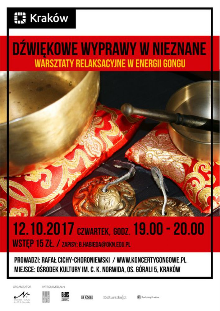 Uczestników prosimy o przyniesienie własnych mat i koców, na których będzie można się położyć i w pełni skorzystać z działania dwięku.