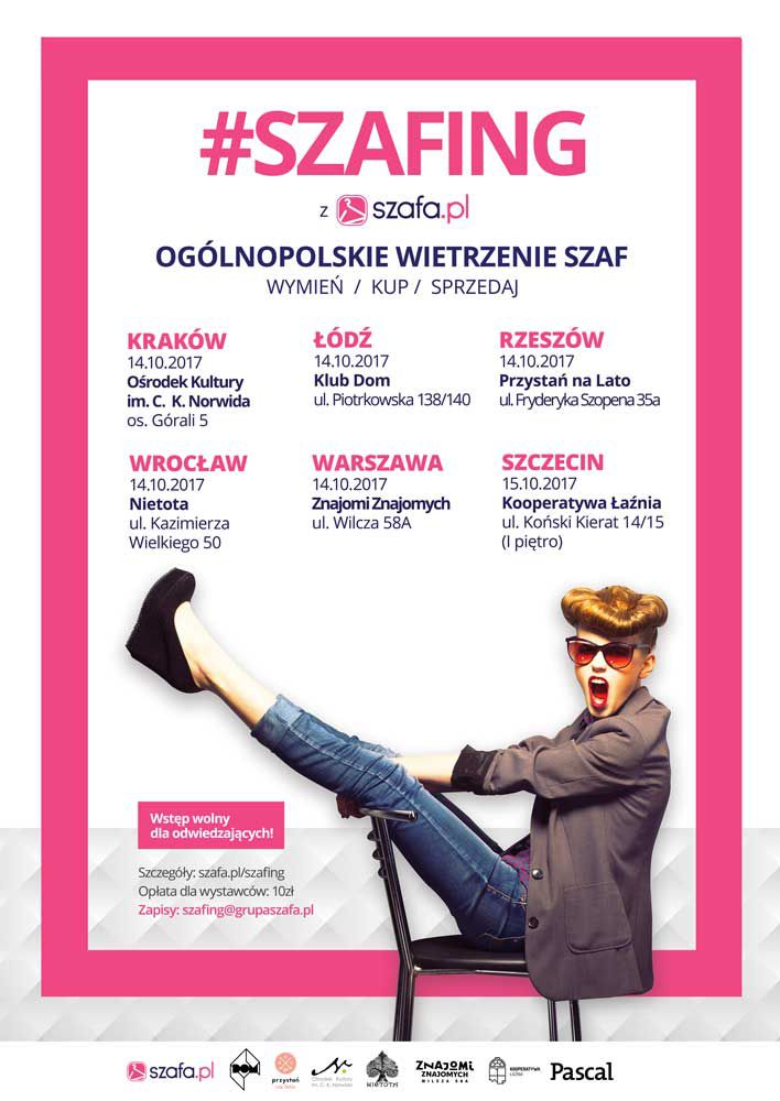Masz za dużo ciuchów i nie mieszczš się w Twojej szafie? Wymień je lub sprzedaj podczas SZAFINGU - Ogólnopolskiej Akcji Wietrzenia Szaf z Szafa.pl i Orodek Kultury Norwida i skompletuj jesiennš garderobę!