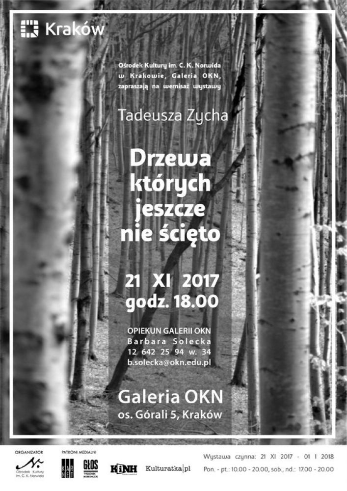 Orodek Kultury im. C. K. Norwida zaprasza na wernisaż wystawy Tadeusza Zycha pt. "Drzewa, których jeszcze nie cięto". Wystawę będzie można oglšdać w Orodku Kultury im. C. K. Norwida do końca roku 2017 r. Wstęp wolny.