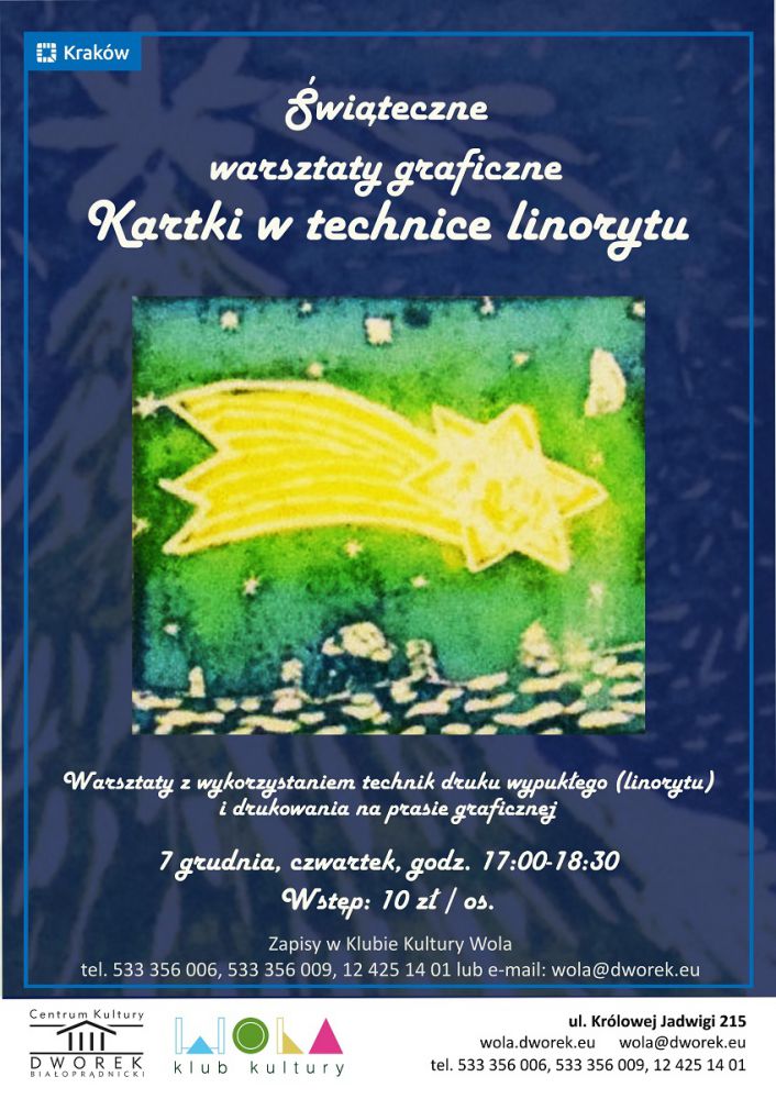 Zapisy w Klubie Kultury Wola tel. 533 356 006, 533 356 009, 12 425 14 01