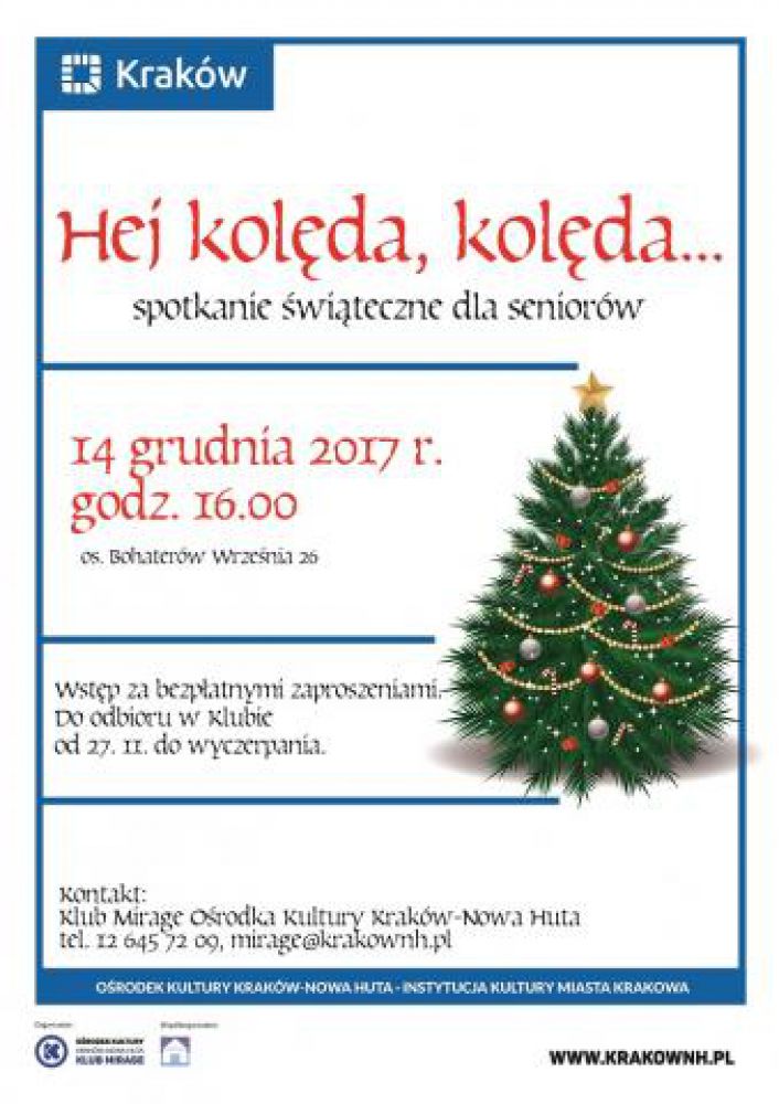 więta Bożego Narodzenia to najbardziej uroczyste więta w naszej tradycji. więta, na które wszyscy czekamy z utęsknieniem, do których przygotowujemy się długo i starannie. Jednoczenie te włanie więta, jak żadne inne, skłaniajš nas do zadumy, zamylenia i wspomnień. Klub Mirage Orodka Kultury Kraków-Nowa Huta oraz Spółdzielnia Mistrzejowice-Północ zapraszajš wszystkich seniorów na uroczyste spotkanie wišteczne w Klubie Seniora. W atmosferze ciepła i wzajemnej sympatii oraz przy dwiękach najpiękniejszych kolęd wspólnie wejdš w ten wišteczny czas.