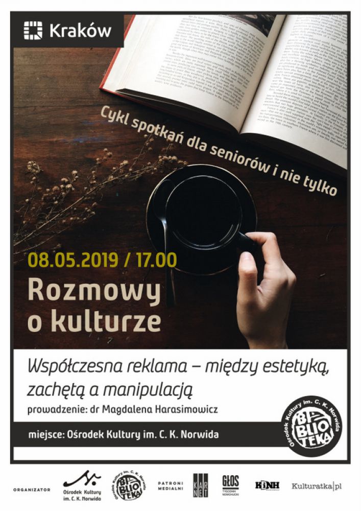 Choć o kulturze powiedziano już wiele, refleksja nad niš jest wcišż aktualna. Biblioteka Orodka Kultury im. C. K. Norwida zaprasza wszystkich chętnych do dyskusji nad szeroko pojętš kulturš oraz zdarzeniami, które wpłynęły na bieg historii, a których lady sš nadal widoczne. Spotkania będš odbywać się cyklicznie w pierwsze rody miesišca o godzinie 17.00 i będš miały charakter rozmowy kierowanej, podczas której uczestnicy dowiedzš się ciekawych faktów, a także będš mogli przy herbacie podzielić się swoimi spostrzeżeniami na temat bieżšcego zagadnienia. Mimo iż spotkania organizowane sš głównie z mylš o seniorach, mile widziane będš także osoby dorosłe w różnym wieku. Jak bowiem stwierdził Benjamin Franklin: nie starzeje się ten, kto nie ma na to czasu.