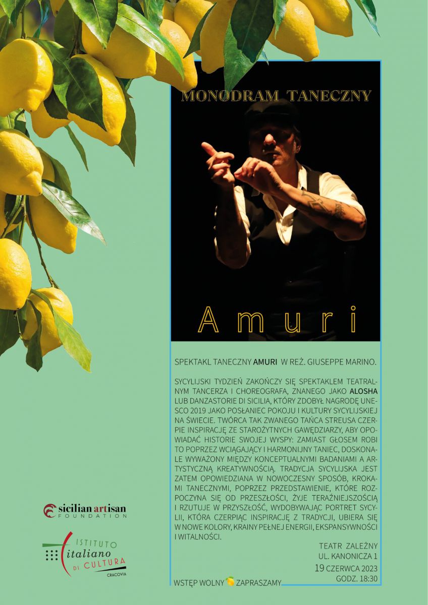 AMURI to tytuł jego przedstawienia, które odbędzie się 19 czerwca w Krakowie, z okazji wydarzenia „Tygodnia Sycylijskiego”. "Muzyczna ścieżka prowadzi nas od Bufalino, Sciasci, Buttitta po Camilleriego, do wierszy i muzyki Mario Incudine, Rity Botto, Oriany Civile i Francescy Incudine. Muzyczne tło spektaklu stanowi pełną emocji podróż po ziemi sycylijskiej w pogoni za utraconą i odnalezioną miłością, do wiecznego teraz i jutra naszych dzieci; do lekkości, która zawsze nas prowadzi, by wydostać się z bagna głupoty. Jesteśmy sycylijczykami, którzy pamiętają ulotność poezji, by zapoczątkować rozwój kultury" (Alosha).