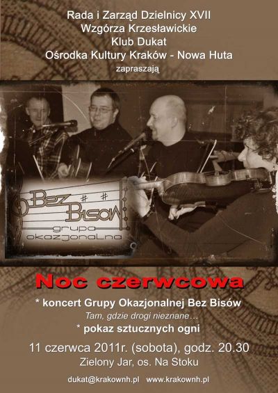 Oœrodek Kultury Kraków – Nowa Huta oraz Rada i Zarzšd Dzielnicy XVII Wzgórza Krzesławickie zapraszajš mieszkańców dzielnicy na coroczne obchody nocy czerwcowej. Impreza odbędzie się w Zielonym Jarze 11 czerwca (sobota) 2011 r. od godz. 20.30.