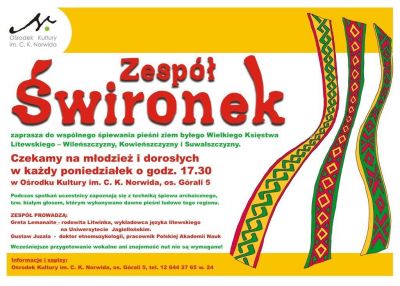 Zapraszamy na bezpłatne warsztaty pieni litewskich. piewamy pieni ziem byłego Wielkiego Księstwa Litewskiego Wileńszczyzny, Kowieńszczyzny i Suwalszczyzny.