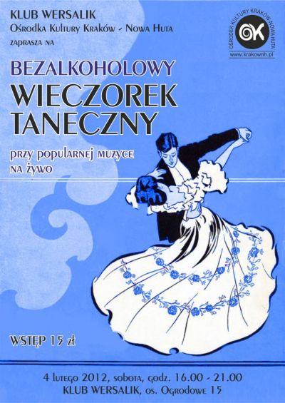 Zapraszamy do Klubu Wersalik Orodka Kultury Krakw-Nowa Huta na bezalkoholowy wieczorek taneczny przy popularnej muzyce na ywo w wykonaniu zespou Mariana Soi.