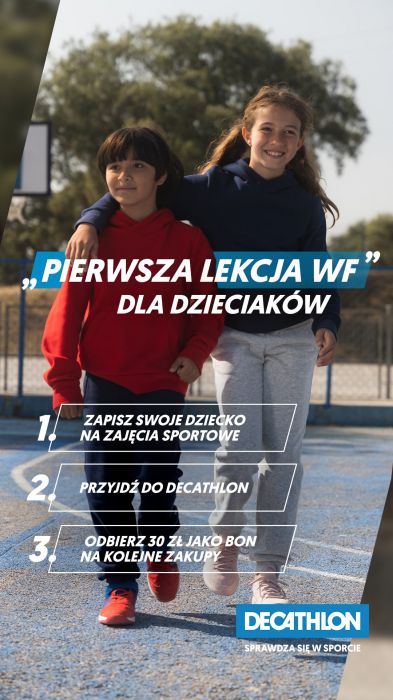 W sobotę, 9 września, w Galerii Bronowice marka Decathlon będzie zachęcała najmłodszych do odłożenia smartfonów i bardziej aktywnego trybu życia. Bezpłatne zajęcia sportowe odbędą się w ramach ogólnopolskiej akcji „Pierwsza lekcja WF-u”. Obowiązują zapisy.