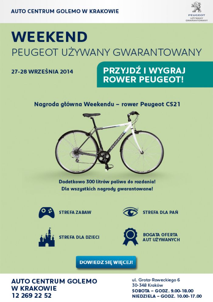 "WEEKEND PEUGEOT UYWANY GWARANTOWANY" KRAKW AUTO CENTRUM GOLEMO
