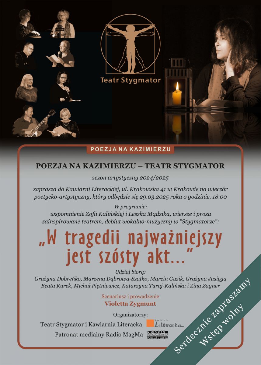 W TRAGEDII NAJWAZNIESZY JEST SZÓSTY AKT z cyklu POEZJA NA KAZIMIERZU -Teatr Stygmator zaprasza